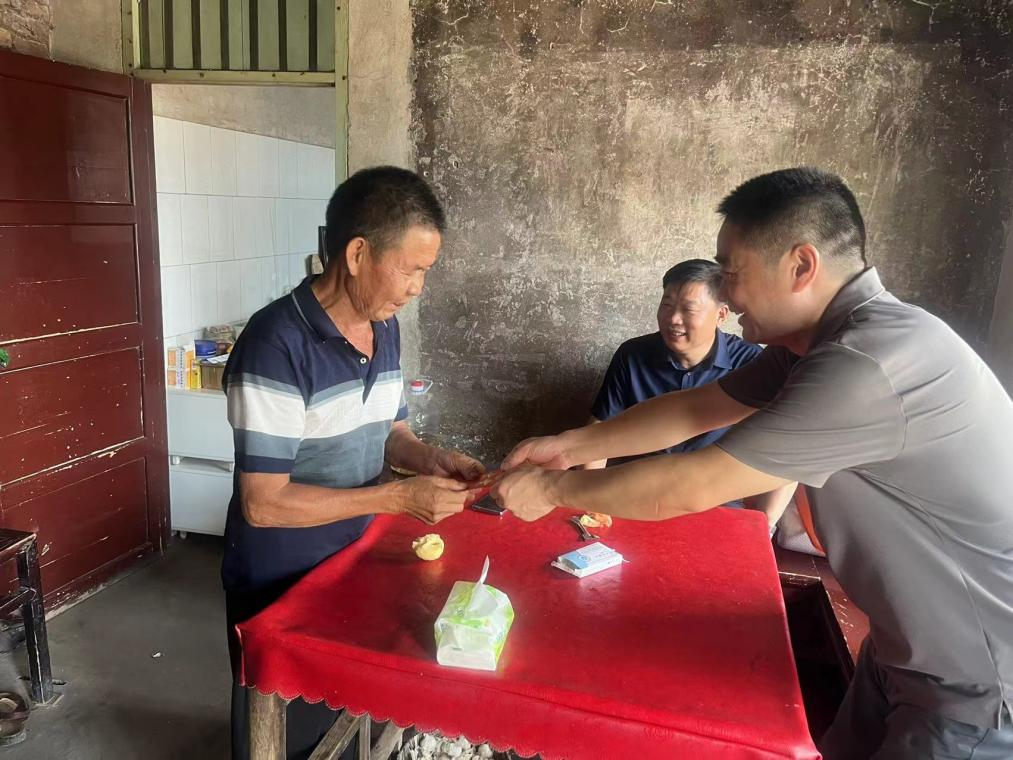 走訪完盧家村,陽文林一行馬不停蹄的趕往鄉(xiāng)村振興幫扶村—新化縣桑梓鎮(zhèn)大田村,考察集團(tuán)公司今年在大田村的幫扶項(xiàng)目現(xiàn)場,走訪慰問結(jié)對幫扶監(jiān)測戶,并為每一個(gè)監(jiān)測戶送上慰問金。走訪結(jié)束后,陽文林一行與鎮(zhèn)、村負(fù)責(zé)人和幫扶工作隊(duì)座談,了解幫扶工作情況,為如何做好幫扶工作助力獻(xiàn)策。