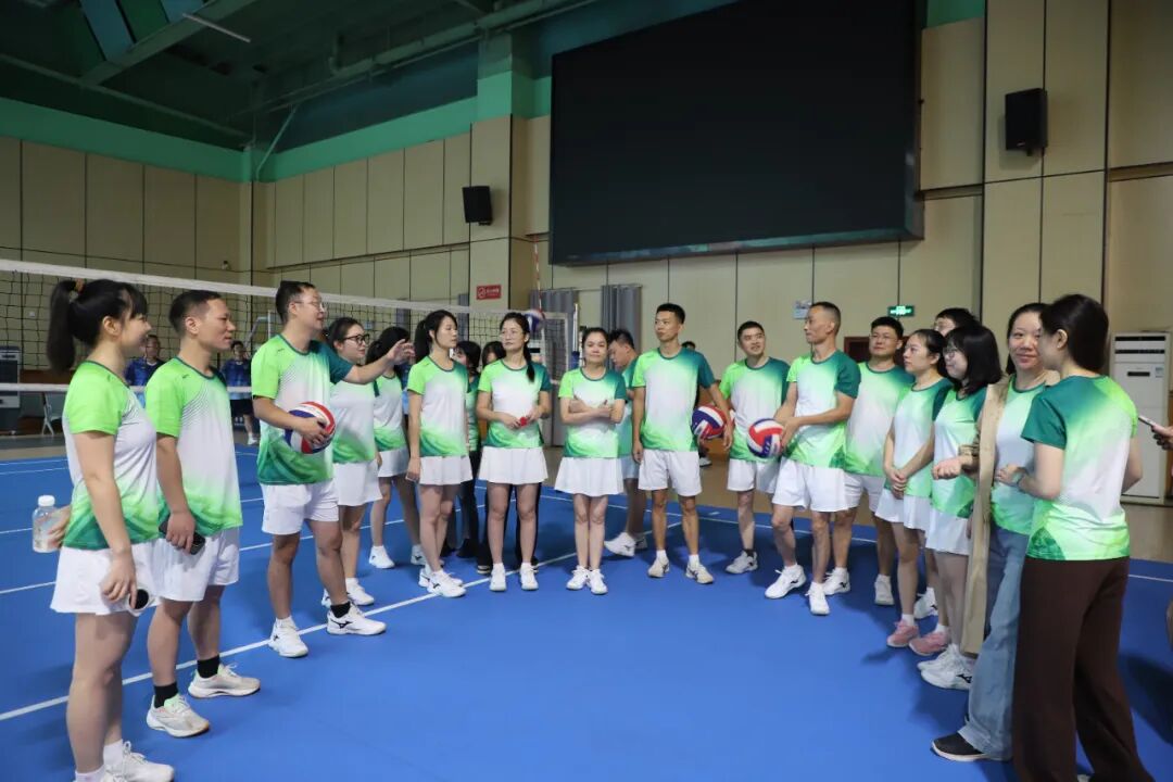 為豐富職工文體生活,激發(fā)團(tuán)隊(duì)協(xié)作精神,市萬寶投集團(tuán)積極組隊(duì)參加9月25日開賽的2025年“創(chuàng)發(fā)杯”婁底市第八屆市直單位職工氣排球比賽。隊(duì)員們身著統(tǒng)一的綠白漸變隊(duì)服,精神抖擻,展現(xiàn)出員工們的蓬勃朝氣與拼搏勁頭。